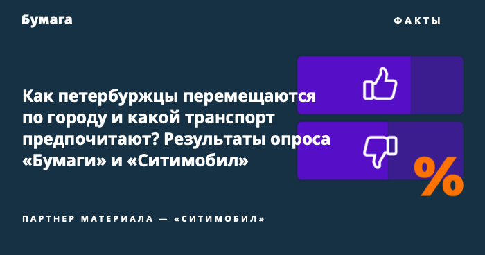 Отдел исследований «Бумаги» вместе с «Ситимобил» провел опрос о транспортной мобильности в Петербурге, респондентами стали 738 человек. «Бумага» публикует результаты.