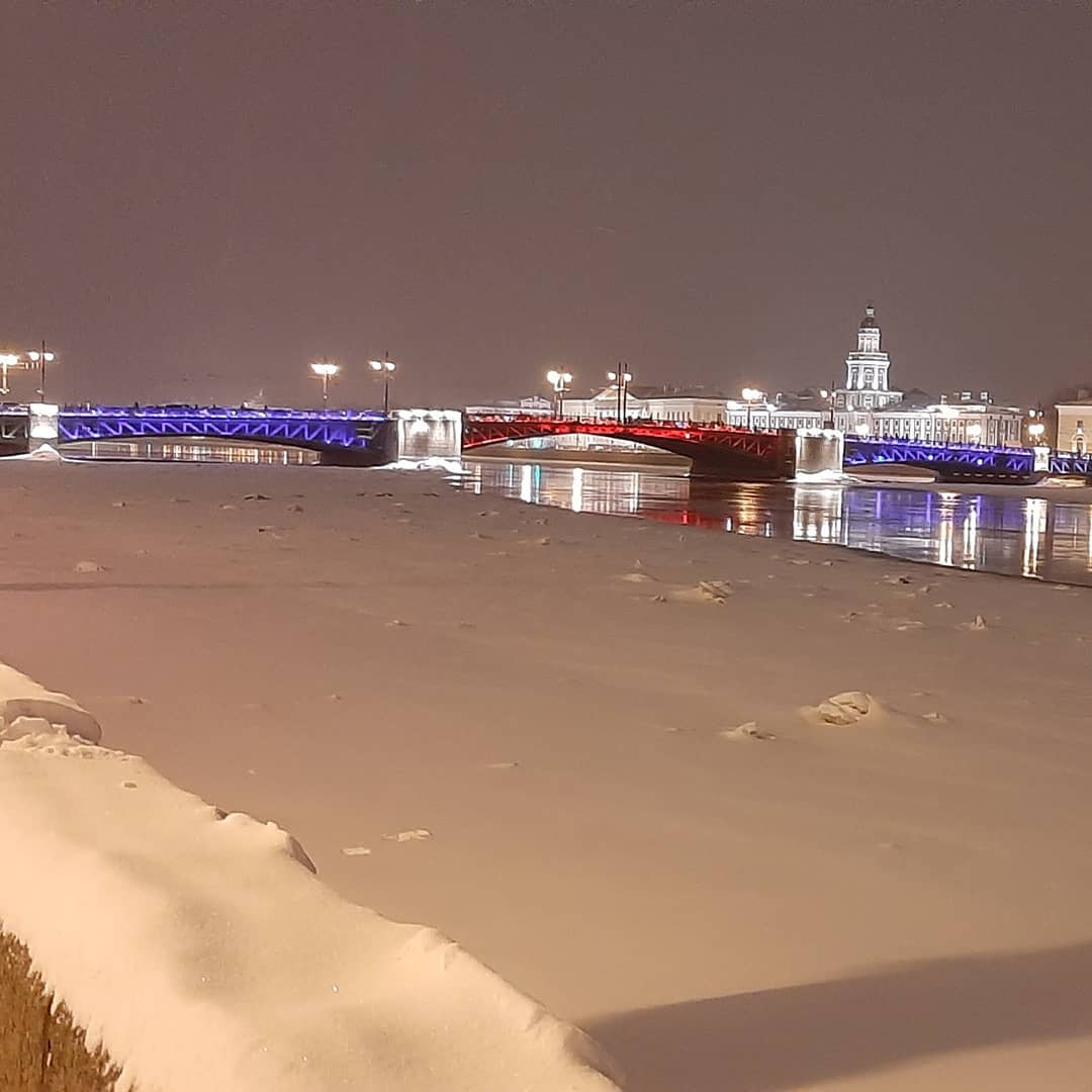 Вечером 23 февраля над Петербургом прогремел салют в честь Дня защитника Отечества, а на Дворцовом мосту включили праздничную подсветку — в цветах российского флага. «Бумага» показывает фото.