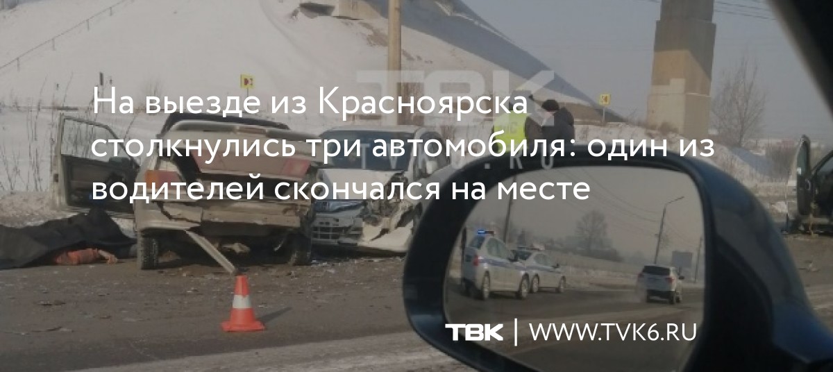 На выезде из Красноярска столкнулись три автомобиля: один из водителей скончался на месте