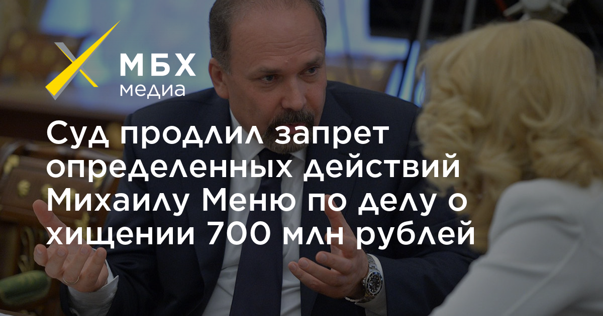 «Басманным судом удовлетворено ходатайство следователя о продлении меры пресечения в виде запрета определенных действий в отношении Михаила Меня», — сообщили в суде.