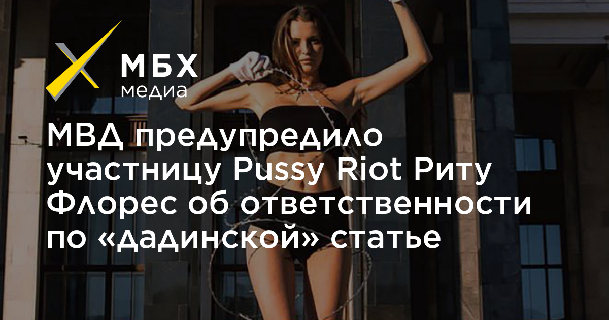 МВД прислало участнице Pussy Riot Рите Флорес (Маргарите Коноваловой) письмо с предупреждением об ответственности по «дадинской» статье (ст. 212.1 УК, неоднократное нарушение правил участия в публичных акциях). Об этом она сама рассказала «МБХ медиа».