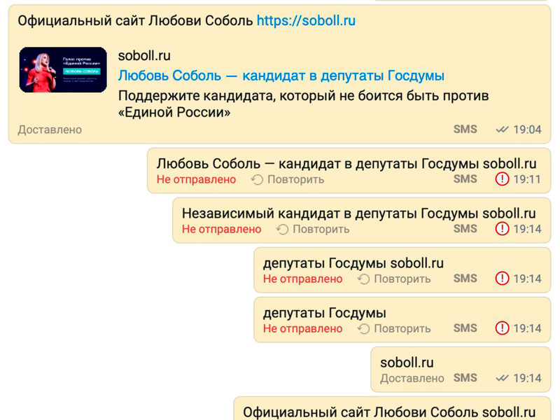 Штаб Соболь: операторы связи блокируют SMS-рассылку со словами "Навальный" и "депутат ГД"