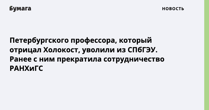 Петербургского профессора, который отрицал Холокост, уволили из СПбГЭУ