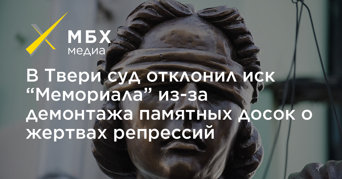 Центральный районный суд Твери отклонил иск «Мемориала» к Тверскому государственному медицинскому университету (ТГМУ) из-за демонтажа памятных досок о жертвах репрессий. Об этом сообщил «МБХ медиа» адвокат Владимир Трегубов.
