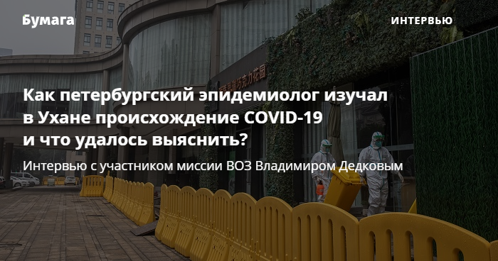 Владимир Дедков из НИИ Пастера — единственный российский эпидемиолог, который в составе миссии ВОЗ расследует происхождение коронавируса. В январе он побывал в китайском Ухане вместе с еще девятью экспертами со всего мира. Миссия выявила четыре основных версии происхождения SARS-CoV-2, которые ученым предстоит доказать или опровергнуть.