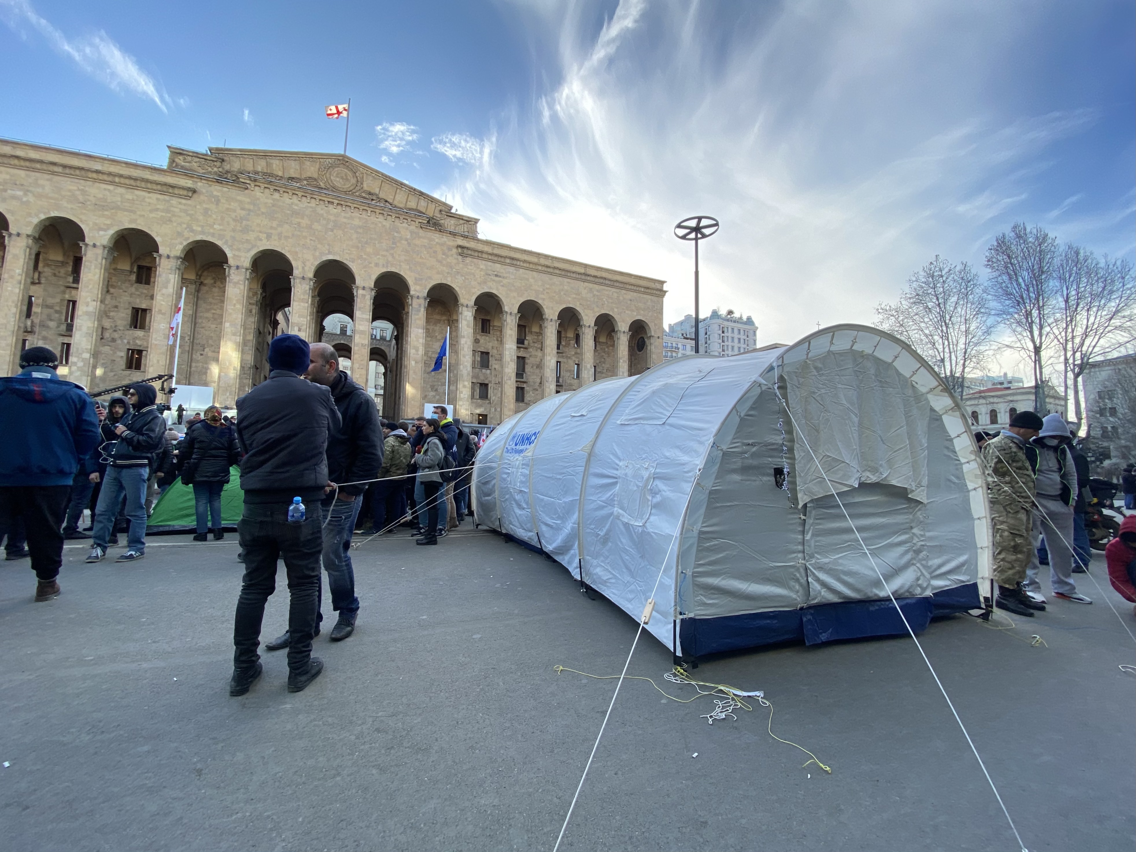 По информации сайта Эхо Кавказа, активисты разбили более 10 палаток у здания парламента и собираются провести там ночь. Одну из палаток демонстранты установили на проезжей части проспекта Руставели. Однако вскоре сотрудники полиции указали им, что это противозаконно, после чего было принято решение перенести палатку на тротуар. "Если наши требования не будут выполнены, через две недели движение "За Грузию" поставит палатки на проезжей части", – заявил один из активистов.