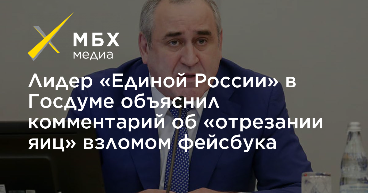 Лидер «Единой России» в Госдуме объяснил комментарий об «отрезании яиц» взломом фейсбука