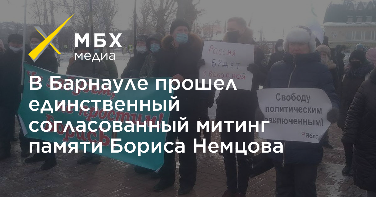 Жители Барнаула вышли на согласованный митинг памяти политика Бориса Немцова, в нем приняли участие около 100 человек. Об этом сообщает «Дождь» со ссылкой на пресс-службу партии «Яблоко».