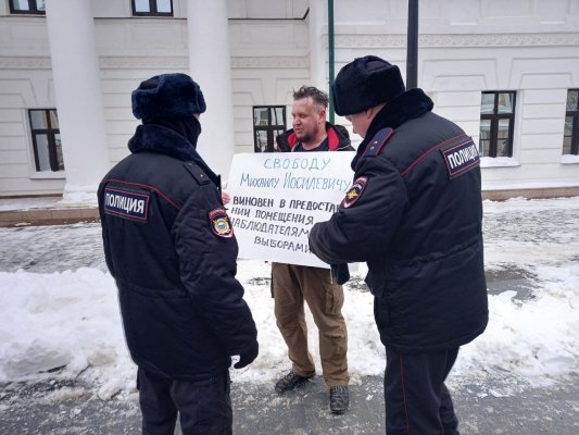 18:06 Рядом с Нижегородским районным судом задержали еще одного одиночного пикетчика Дмитрия Калинычева. Задержанный выступил в поддержку Михаила Иосилевича, настоятеля Храма Летающего Макаронного Монстра, которого удерживают в СИЗО по делу о «нежелательной организации». Об этом ОВД-Инфо рассказал председатель нижегородского «Мемориала» Аркадий Галкер.