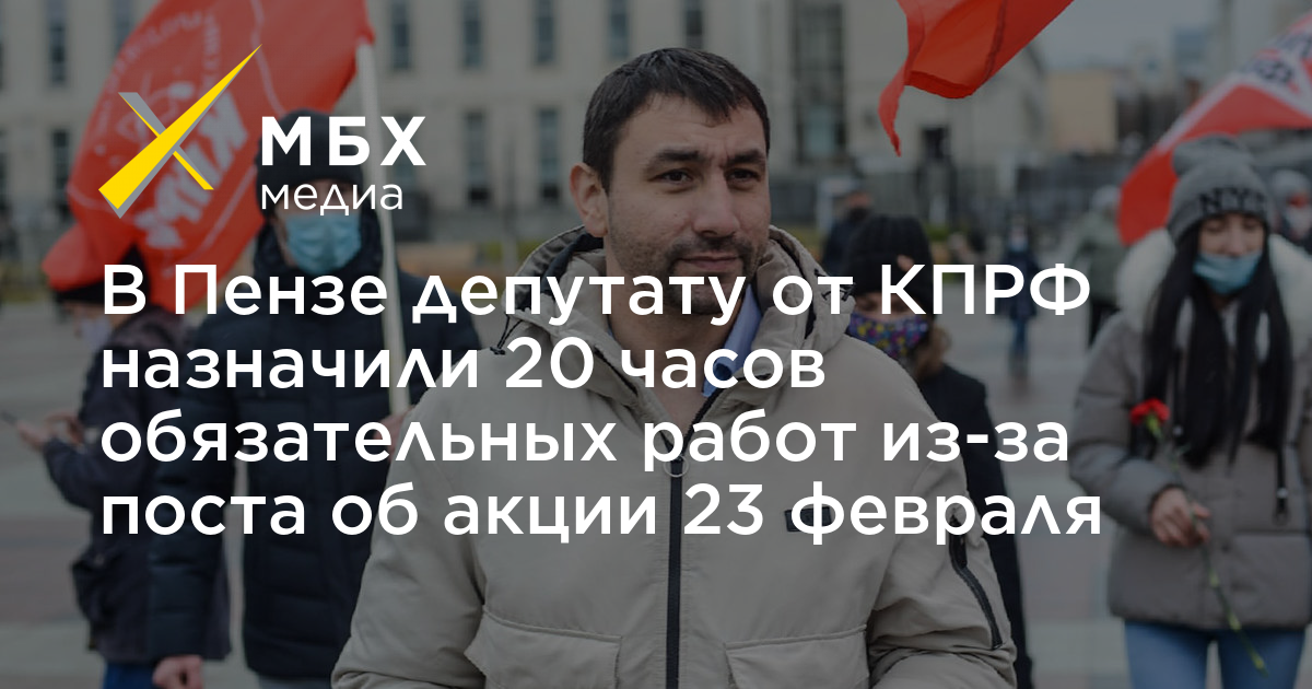 В Пензе депутату от КПРФ назначили 20 часов обязательных работ из-за поста об акции 23 февраля