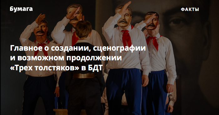 Подписывайтесь на культурный гид «Бумаги», чтобы всегда быть в курсе, на какие выставки и спектакли пойти. Читайте также о петербургском спектакле в барах, где выпивают и слушают джаз, и о постановке про русскую классику, у которой есть пять версий.
