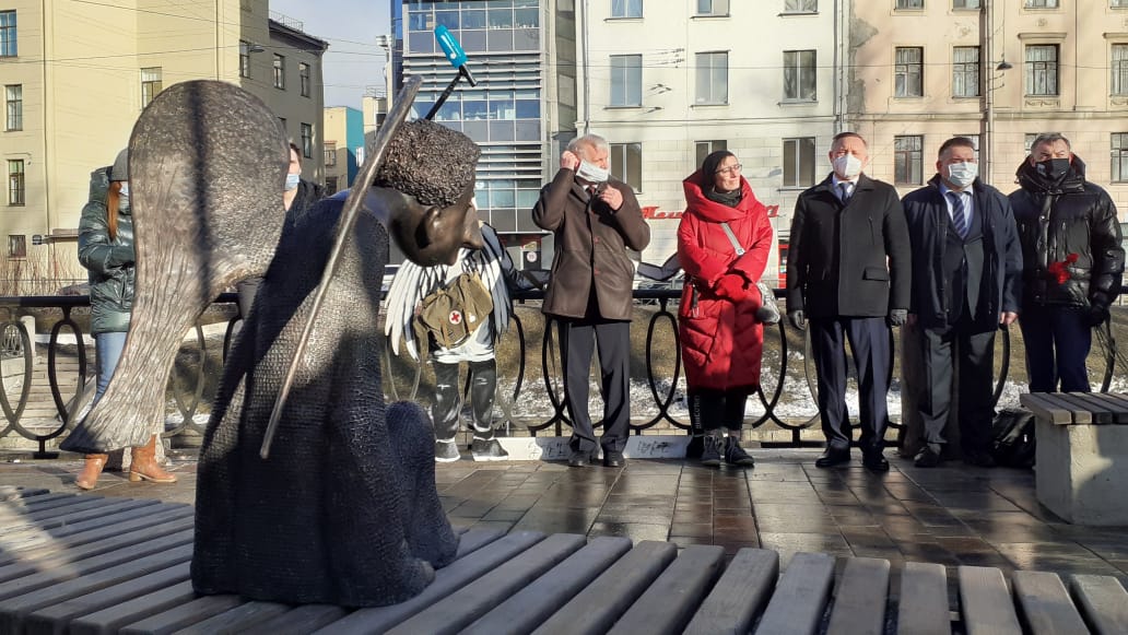 На церемонии присутствовали губернатор Петербурга Александр Беглов, а также главные врачи госпиталя ветеранов войн, НИИ Джанелидзе и Александровской больницы. Беглов сказал, что его пригласила на открытие вдова автора скульптуры, и вспомнил погибших врачей, медсестер и санитаров, которые отдали свою жизнь в борьбе с пандемией.