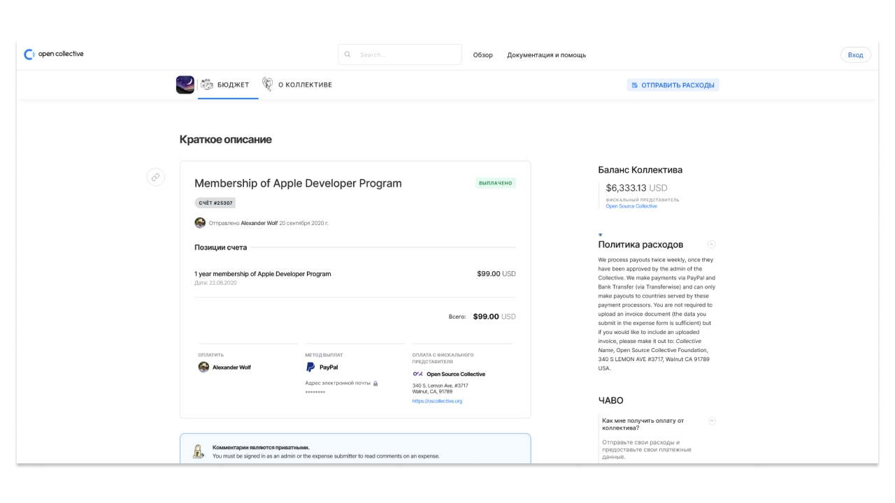 - Open Collective предлагает полную прозрачность транзакций.