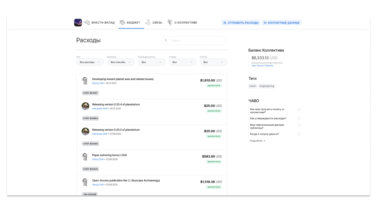 В итоге можно посмотреть все расходы коллектива. Будет полезно, когда вы только выбираете, кого поддерживать.