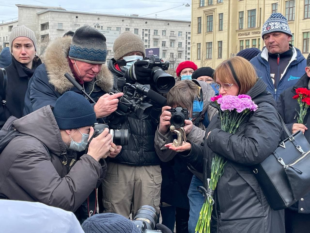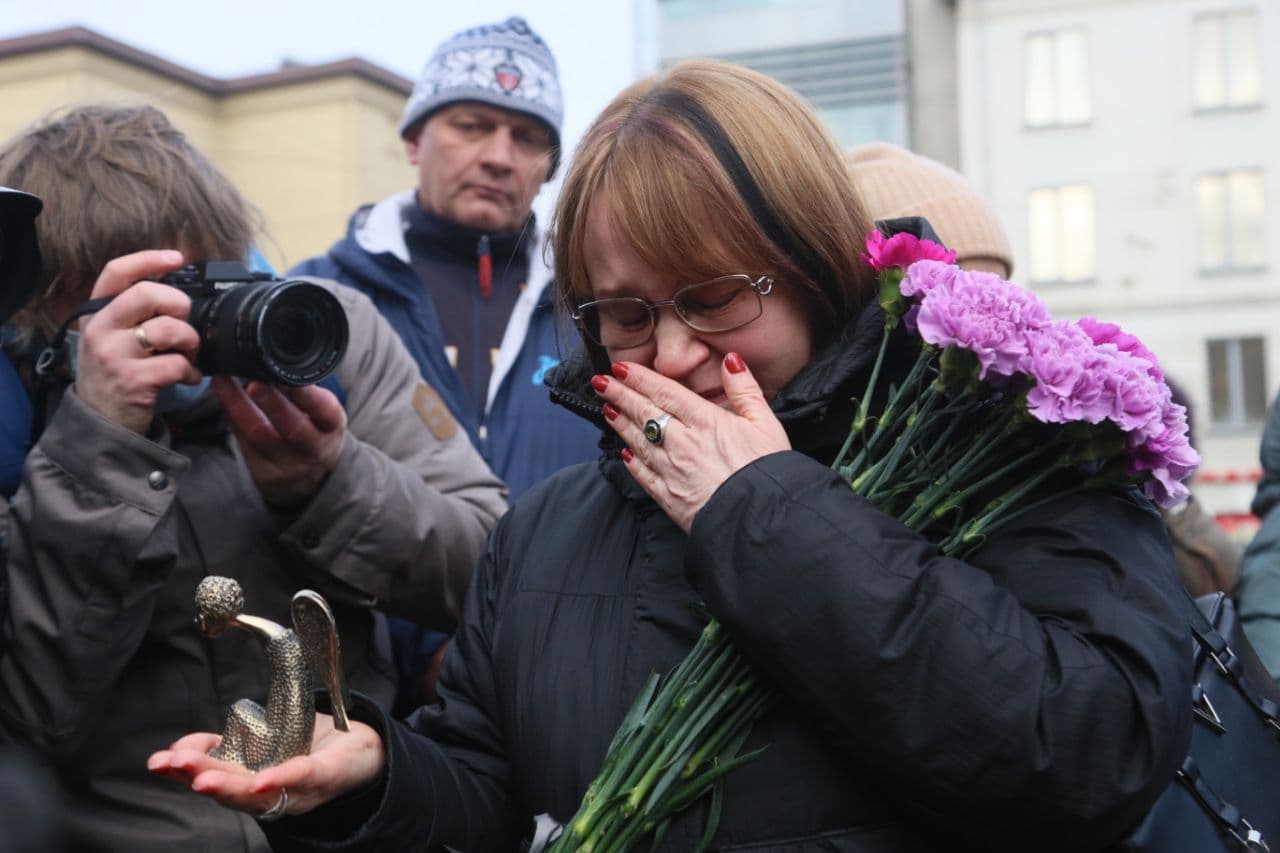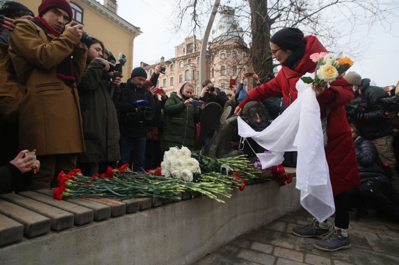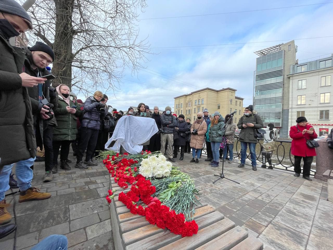 Как передает корреспондент «Бумаги», 4 марта к скульптуре пришли более 80 человек, в том числе Вишневский, вдова скульптора Романа Шустрова Мария Касьяненко, а также создательницы «стены памяти» Галина Артеменко и Ирина Маслова. С речью также выступил уполномоченный по правам человека Александр Шишлов.
