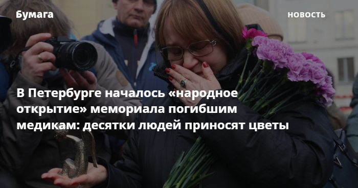 В 12:00 в четверг на набережной реки Карповки началось «народное открытие» скульптуры «Печальный ангел», созданной в память о погибших во время пандемии медиках. Об этом сообщает корреспондент «Бумаги».