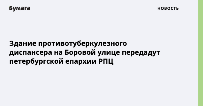 Здание противотуберкулезного диспансера на Боровой улице передадут петербургской епархии РПЦ