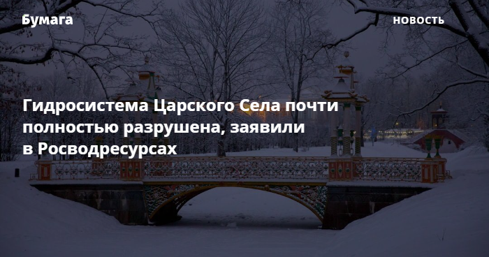 К марту 2021 года гидросистема музея-заповедника «Царское Село» оказалась почти полностью разрушена. Об этом заявили Росводресурсы по итогам заседания, где рассматривали план мероприятий по восстановлению гидросистемы.