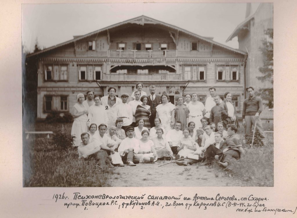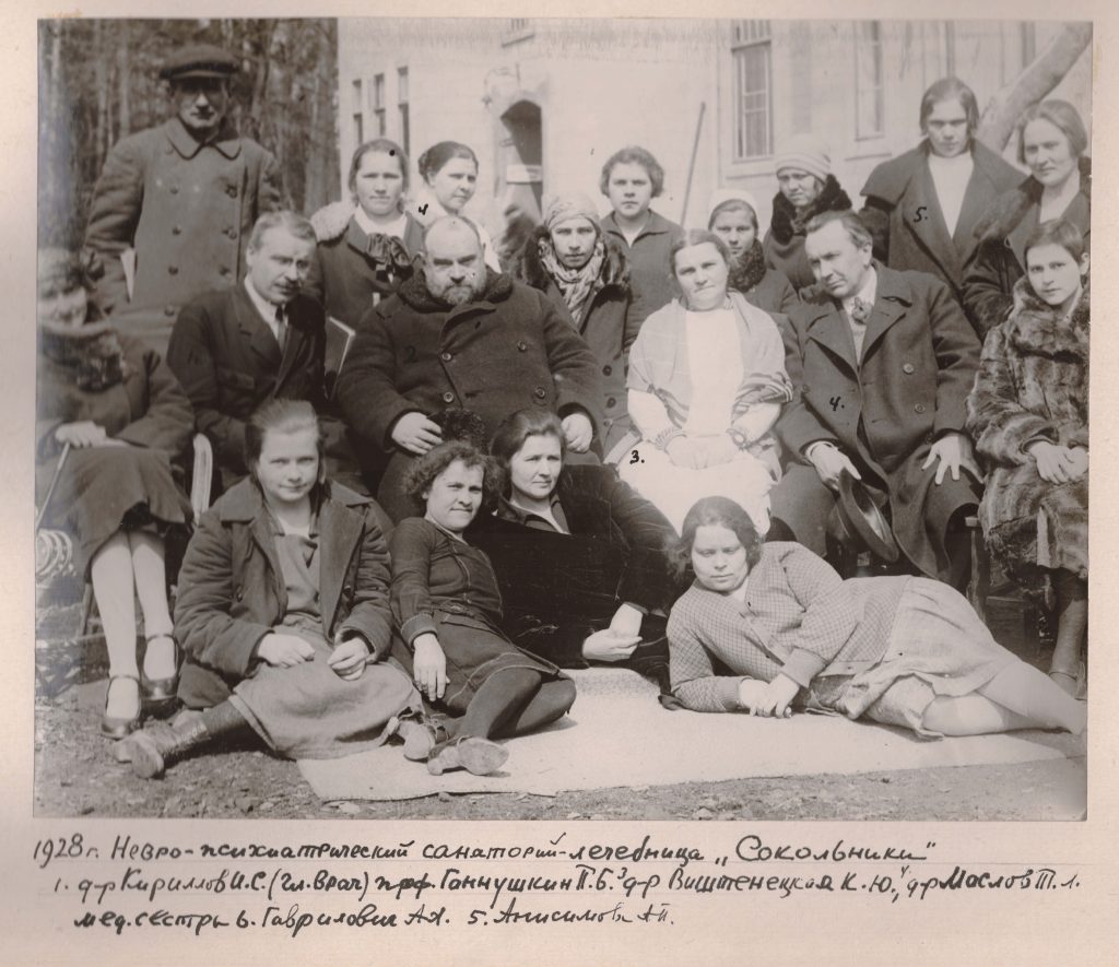 Справа: Сотрудники и пациенты психоневрологического санатория им. Артема Сергеева, который Кириллов возглавлял до «Сокольников». 1926 год