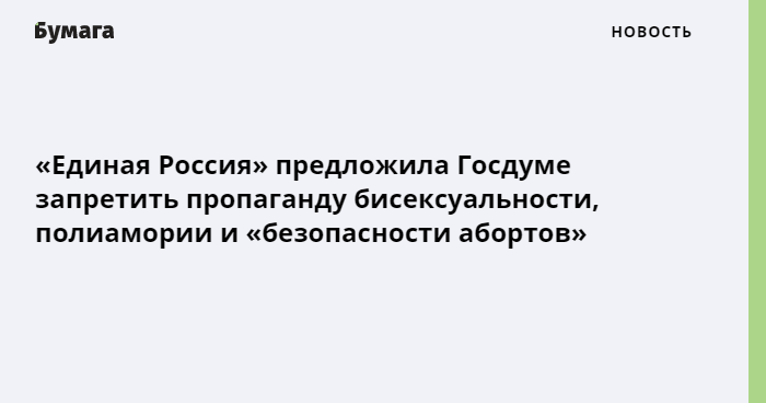 «Единая Россия» провела конференцию «Правовые и законодательные аспекты поддержки семей и семейных ценностей в РФ», во время которой предложила Госдуме запретить пропаганду трансгендерного перехода, бисексуальности и полиамории, а также вывести аборты из ОМС. Об этом сообщает «РИА Новости».