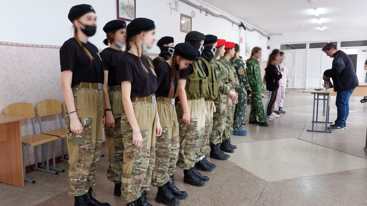 Российские власти открывают в крымских школах кадетские классы и проводят набор в военно-патриотическое движение «Юнармия». Детей учат разбирать оружие и стрелять, носить камуфляж и ходить строем.
