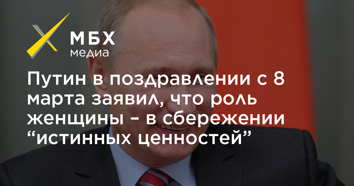 Путин в поздравлении с 8 марта заявил, что роль женщины — в сбережении «истинных ценностей»