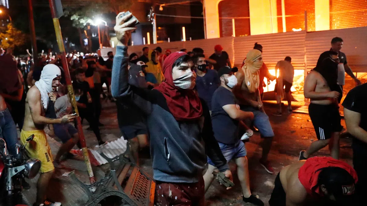 Силовики обстреливают протестующих в центре Асунсьона резиновыми пулями и заливают слезоточивым газом. Участники акций в ответ ломают полицейские заграждения, поджигают предметы инфраструктуры и кидают в полицию камни.