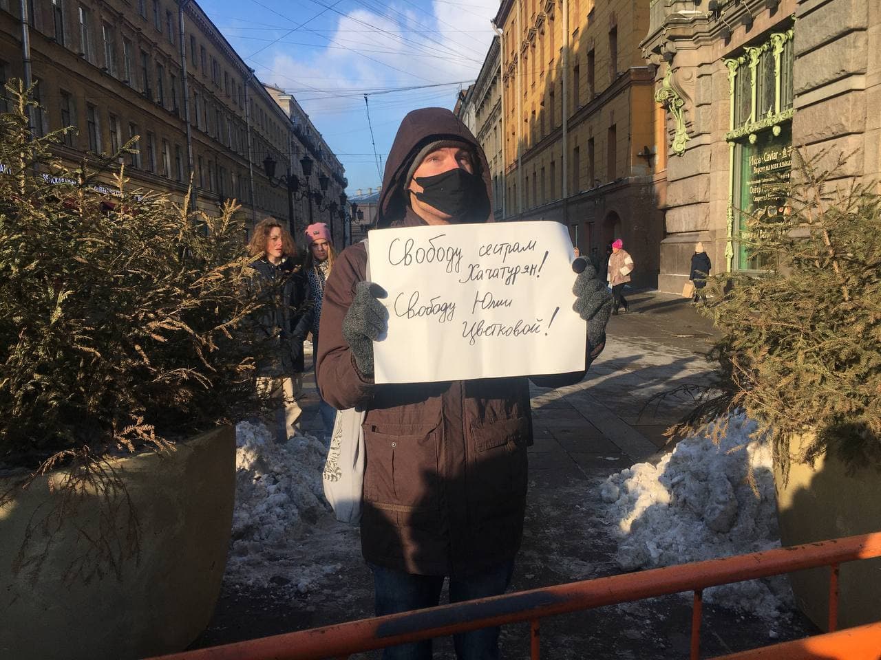 Днем 8 марта на Малой Садовой улице в центре Петербурга прошли одиночные пикеты против дискриминации и насилия и за равные права. Об этом сообщает корреспондент «Бумаги».