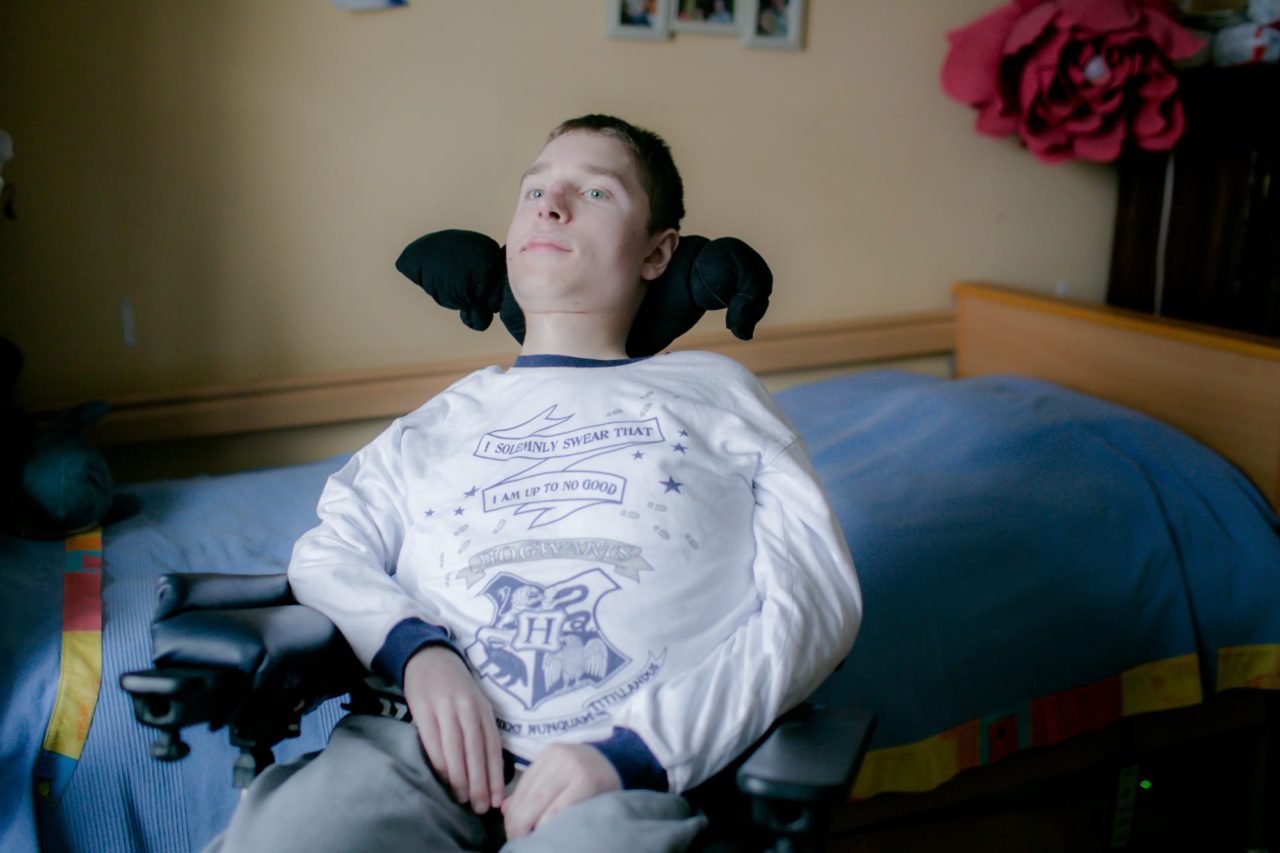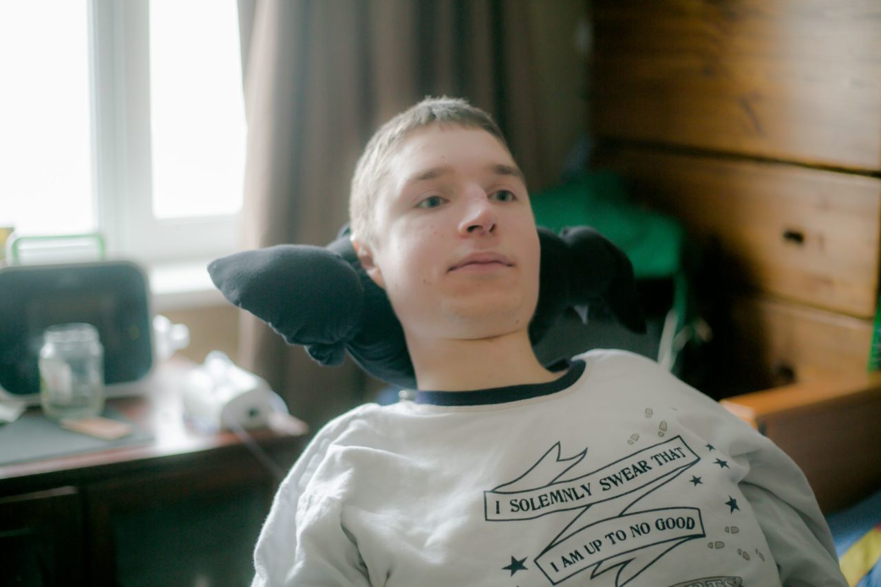 Илья, как и Дженнет, передвигается на инвалидной коляске, но диагноз у него другой — миодистрофия Дюшенна. Это тоже генетическое заболевание, разрушающее мышцы с самого детства. Оно практически обездвижило Илью.