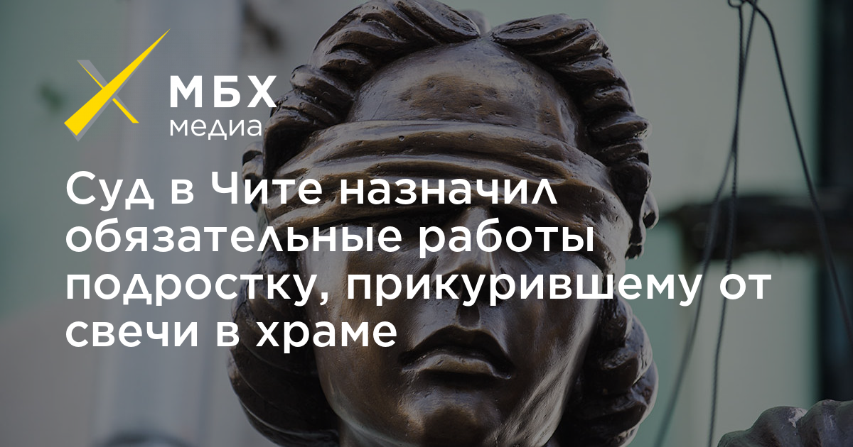 Мировой суд в Чите назначил 120 часов обязательных работ подростку, летом прошлого года опубликовавшему видео, на котором прикуривает сигарету от свечи в храме. Об этом сообщает ТАСС со ссылкой на пресс-секретаря Забайкальского краевого суда Викторию Михайлюк.