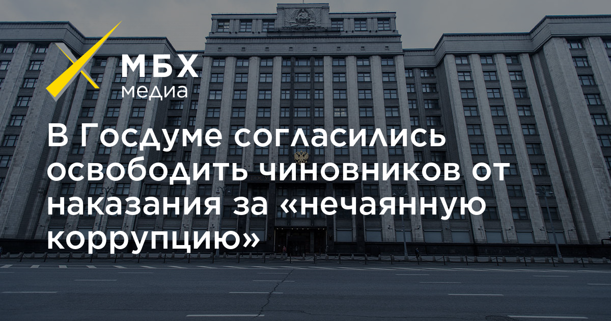 Согласно еще одному законопроекту, от ответственности за «нечаянную коррупцию» будут освобождены сотрудники госкорпораций и госкомпаний, публично-правовых компаний, Пенсионного фонда, Фонда социального страхования и фонда ОМС, работники государственных внебюджетных фондов и других организаций, «создаваемых для выполнения задач, поставленных перед федеральными государственными органами».