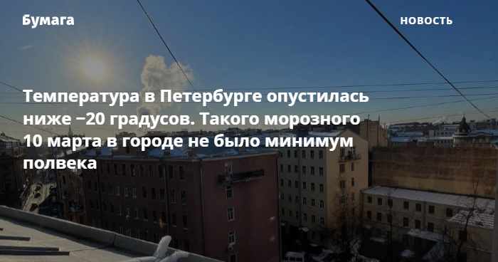 Прошедшая ночь в Петербурге стала самой холодной с начала марта. Как пишет синоптик центра «Фобос» Михаил Леус, таких морозов 10 марта не было минимум 50 лет.