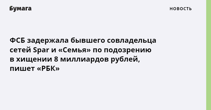 ФСБ задержала бывшего совладельца сетей Spar и «Семья»