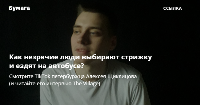 Издание The Village выпустило интервью с петербуржцем Алексеем Щиклицовым, которому диагностировали атрофию зрительных нервов Лебера. Молодой человек ведет просветительский TikTok, в котором говорит о жизни незрячих и слабовидящих людей, в том числе про выбор стрижки, поездки на автобусе и ходьбу по тротуарам с лужами.