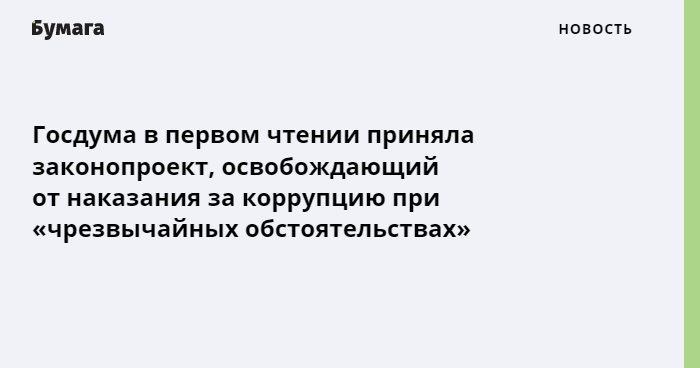 Госдума одобрила законопроект о коррупции при «чрезвычайных обстоятельствах»
