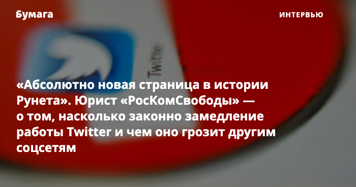 — То, что делает Роскомнадзор, — с юридической точки зрения абсолютно незаконно, так как замедление трафика не предусмотрено действующей нормой федерального закона, по которой Twitter получил требование. Так называемые частичные ограничения возможны по недавно принятому «закону о запрете цензуры со стороны интернет-порталов». Однако по нему Роскомнадзор никаких требований не предъявил.