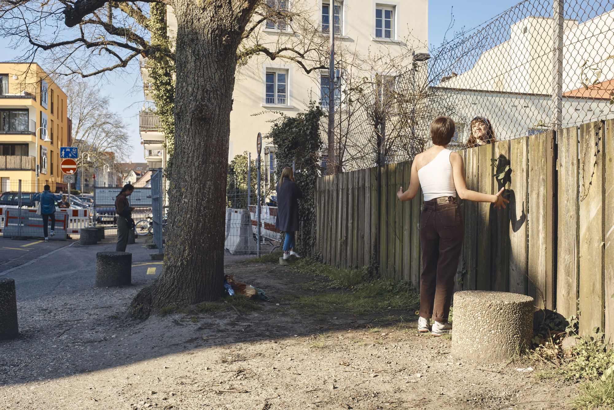 Номинант в категории «Главные новости» среди фотоисторий. «Трансграничная любовь». Кройцлинген, 4 апреля 2020 года. Леони Х. стоит на швейцарской стороне и разговаривает со своей подругой Яниной В. на немецкой стороне через забор. Швейцария закрыла свои границы впервые после Второй мировой войны из-за пандемии с 16 марта по 15 июня
