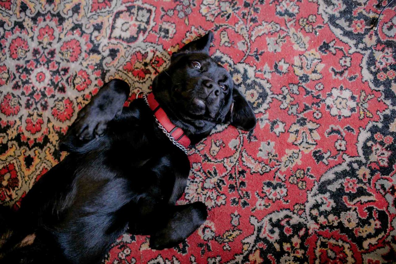 Юля ставит пустую чашку на стол и опускает руки, ощупывая пространство внизу. Спустя пару секунд в ее ладонях оказывается мокрый нос черного лабрадора. «Гре-е-ейси моя, — говорит Юля, поглаживая собаку, — ты проснулась». Собака в ответ машет хвостом и дает почесать себе спинку.