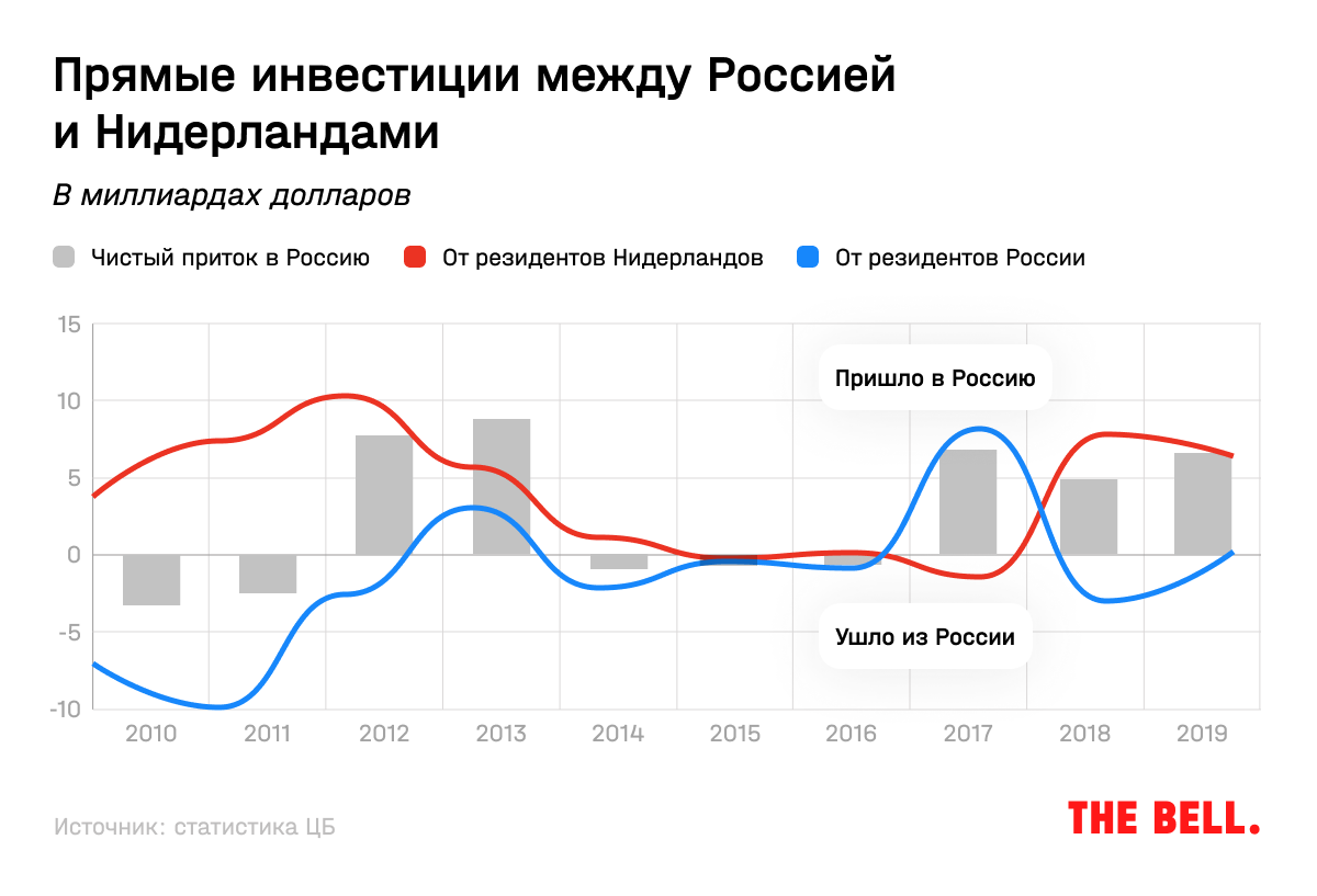 Часто деньги российских компаний проходят через Нидерланды и возвращаются в Россию. В последние три года в России был чистый приток средств из Нидерландов. То есть приходило больше, чем выводили.