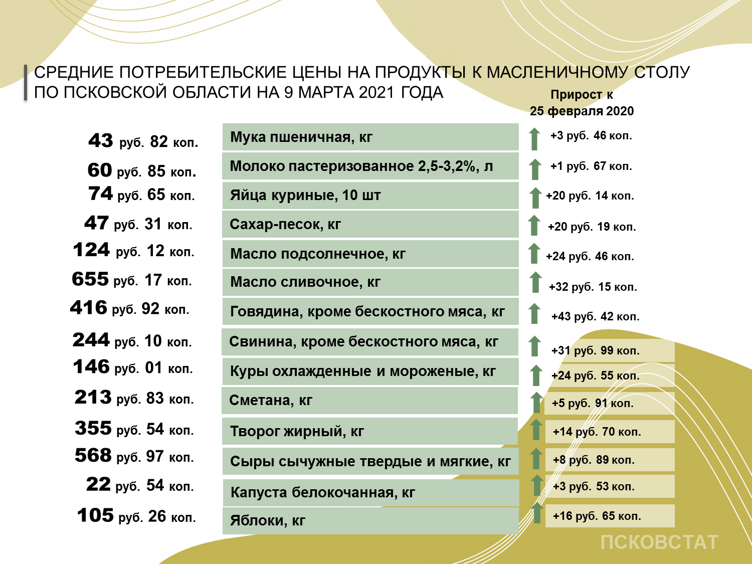 Цены на некоторые «масленичные» продукты в Псковской области выросли более чем на 74 процента