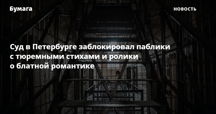 Суд в Петербурге заблокировал паблики с тюремными стихами и ролики о блатной романтике