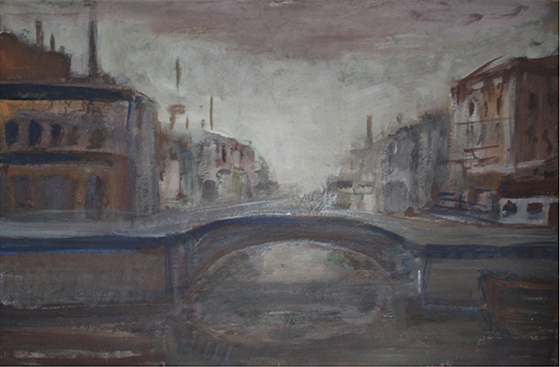 Эта живопись соединяет несоединимое, отрицает и утверждает. Вспоминается Зинаида Гиппиус, назвавшая Петербург «прекрасно-страшным», или Ахматова, написавшая о городе «славы и беды». У Калужнина тоже не одно или другое, а все вместе, в неразрывном единстве.