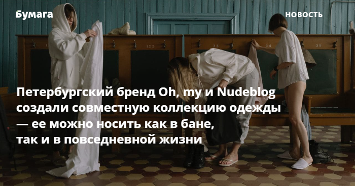 Бренд Oh, my из Петербурга и Nudeblog создали совместную коллекцию вещей, которые можно носить как в бане, так и в повседневной жизни. Продажи начнутся уже на следующей неделе, рассказала «Бумаге» создательница блога Анна Артемьева.