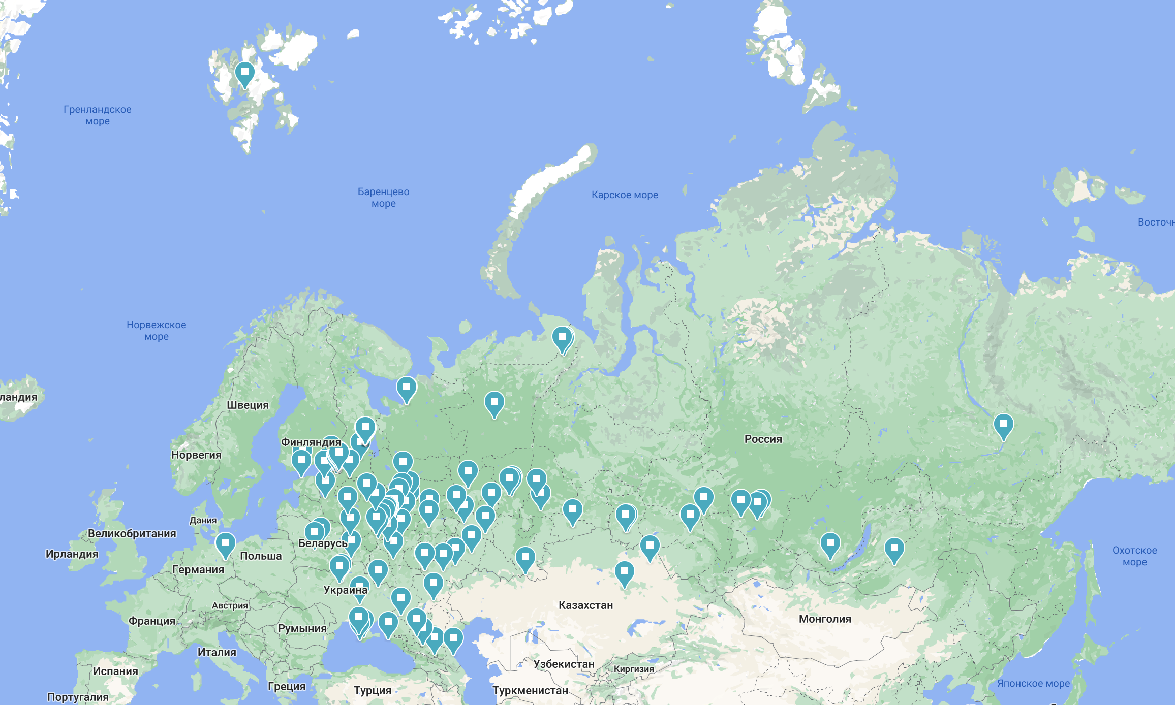 Я ищу вывески в интернете, некоторые снимки мне присылают. Найденные вывески я наношу на карту. Сейчас на ней 554 точки и около 80 городов.