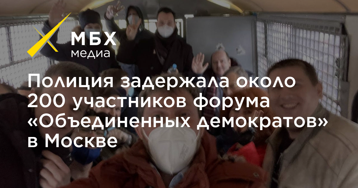 В Москве сотрудники полиции задержали как минимум 100 участников форума независимых депутатов «Объединенных демократов». Об этом «МБХ медиа» сообщила координатор организации Анастасия Буракова.