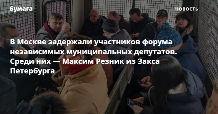 В Москве полицейские задержали участников форума «Муниципальная Россия» для независимых муниципальных депутатов. Об этом сообщает депутат Закса Петербурга Максим Резник, который также попал в автозак.