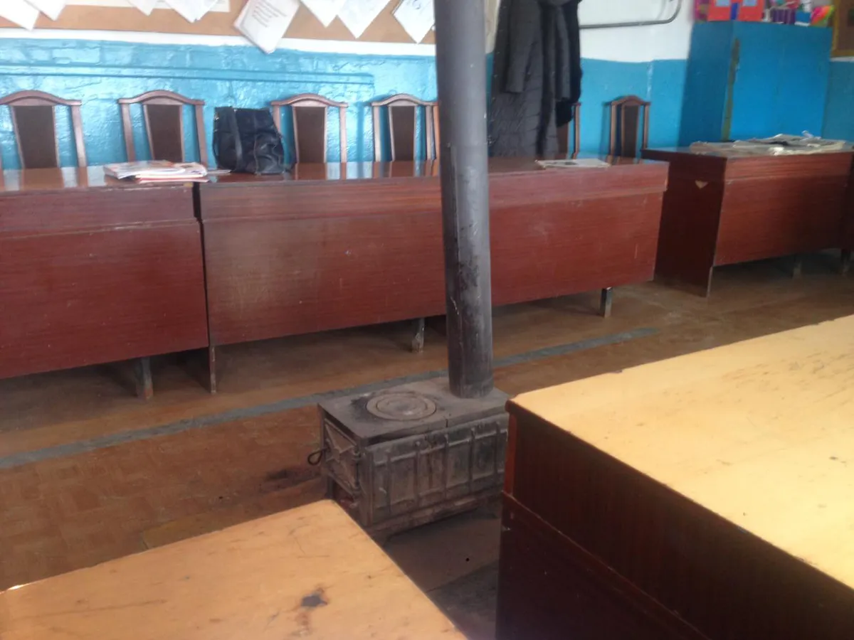 Центрального отопления в школе нет, поэтому приходится использовать печи. «В каждом помещении печками-буржуйками топлю, я трубы вывел так, чтобы безопасно было. Это все своими силами — кто же еще будет делать», — рассказывает Алил. Но, несмотря на его усилия, все проблемы решить не получается. «Двери [в школе] должны открываться наружу. А у нас они открываются внутрь, и исправить это невозможно. Из-за этого штрафы — то от санэпидемстанции, то от пожарных. Штрафы накладывают на директора. Получается, виновный я. Приходится платить».