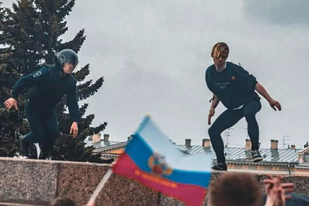 Мякшин ловко удирал от полицейских и, когда спрыгивал с памятника вниз, задел Пугачева, тот неудачно упал и разбил губу. За губу коллеги отомстили Мякшину ударом ноги по голове и дубинками по спине.