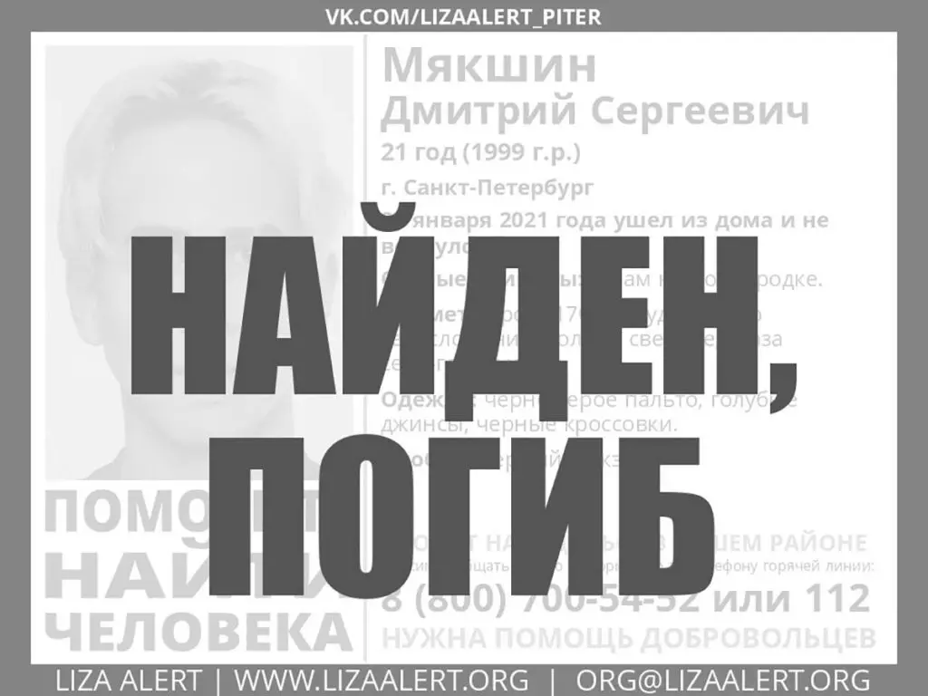 В конце января Мякшин пропал. С 28 января Дмитрия Мякшина искал его отец Сергей Мякшин и волонтеры поискового отряда «ЛизаАлерт». Через три недели его нашли в морге города Токсово Ленинградской области. Местное бюро судебно-медицинской экспертизы пришло к выводу, что смерть Дмитрия наступила в результате отравления неустановленным веществом.