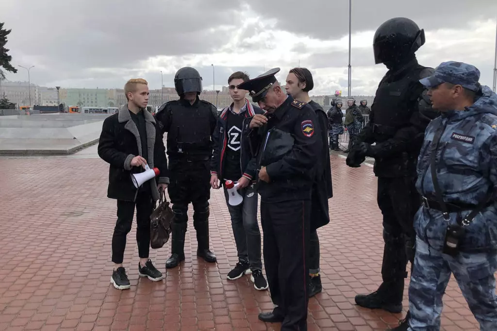 Дмитрий Мякшин из «Поколения Z» задержан за то, что перекрикивал выступающих на оппозиционной акции, 2019 год. Фото: Штаб Навального в Санкт-Петербурге